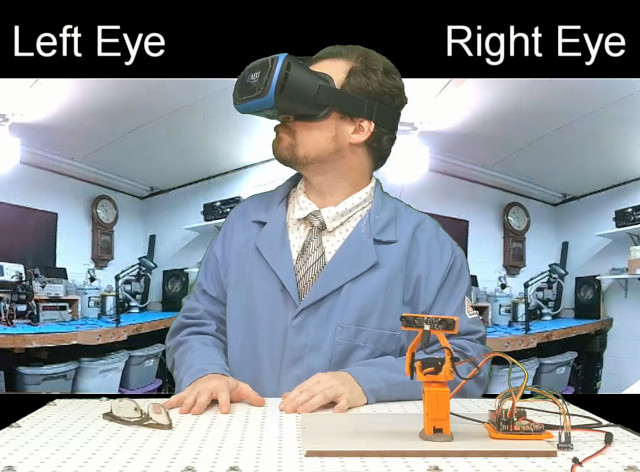 Click above image for demo video: I created a VR camera platform (or a robotic head) using a RaspberryPi 4, PCA9685 board, level shiftier, servos, stereo camera, and an Android phone. I wrote the code runing on the PI in Python and the code on the phone in Java. The orange parts are all modeled in 3D and 3D printed with ball bearings pressed into critical areas.